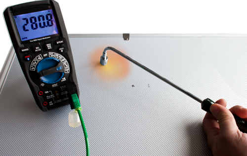 Dieser Oberflächentemperaturfühler ist zum Messen von z.B. Motorblöcken, Kühlkörpern und Fußbodenheizungen geeignet.